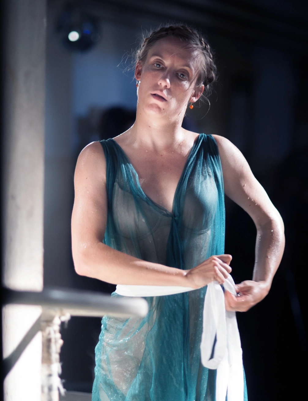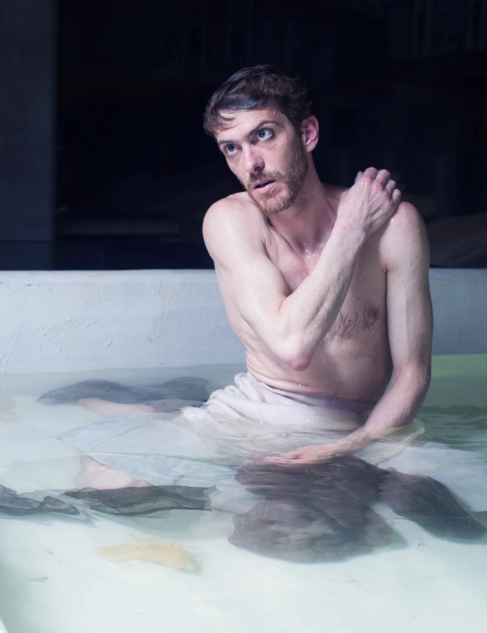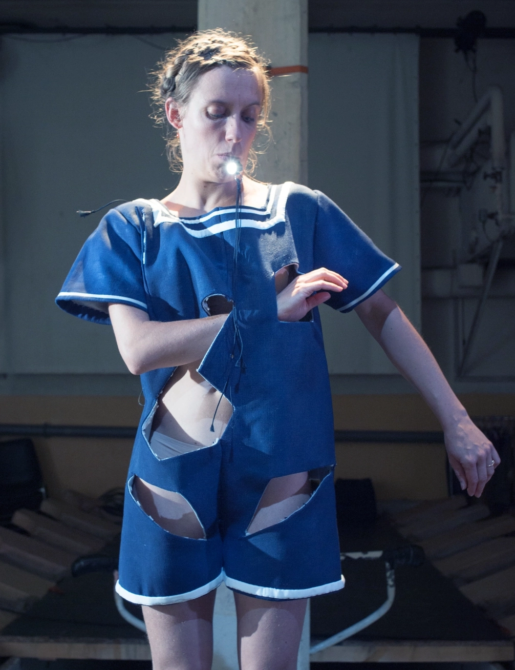 Elaborer une silhouette évolutive par interaction avec l’eau et le jeu d’un interprète. Commencer par des explorations plastiques, par des expériences avec des tissus. Observer leurs transformations possibles par interaction avec l’eau. Se laisser conduire par la matière pour concevoir l’esthétique et l’utilisation. Adapter la coupe et les techniques d’assemblages en fonction.